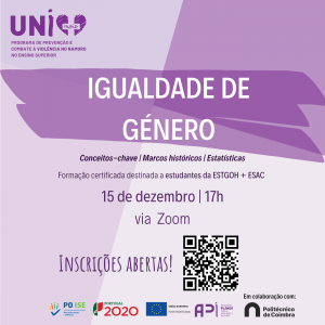 No dia 15 de dezembro (17h-20h30) irá decorrer uma sessão destinada a alunos da ESTGOH e ESAC com o tema “Igualdade de Género”.