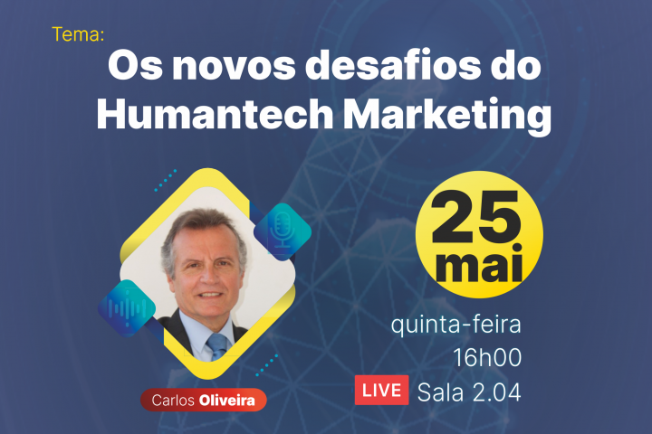 No dia 25 de maio, pelas 16h00, na sala 2.04, realiza-se a 3.ª e última conferência de marketing sob o tema ” Os novos desafios do Humantech Marketing”. O nosso convidado será o prestigiado, Carlos Oliveira, que conta com uma vasta carreira e experiência na área do marketing.